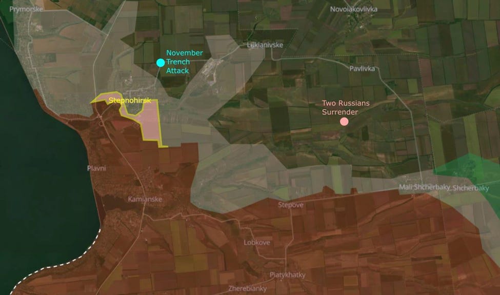 Back in November, the International Legion clears a trench. Two Russians surrender north of Stepove.