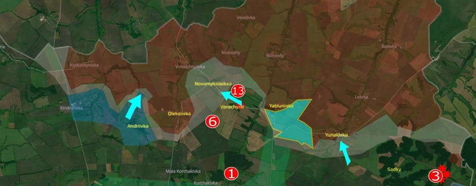 There are a lot of airstrikes on Stepanivka, where Russia is expected to push soon. So far, Russia has been unsuccessful in their attempts to move across the small rivers north of Yablunivka.