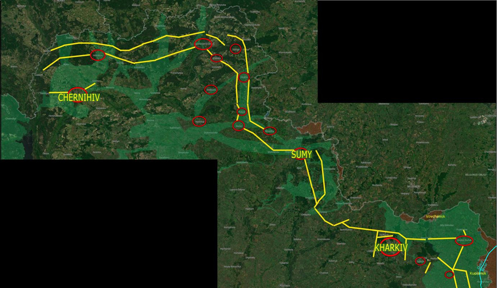 The fighting in the north is static with low intensity attritional aerial and ground combat. The same defensive obstacles that are being erected in the south are being built in the north, and the Chernihiv sector is quiet enough for secondary lines to be built 50 km from the border while some of the front line obstacles are being built as close as 8 km to the border. Additional fortifications and obstacles were built around the cities, towns and certain villages.