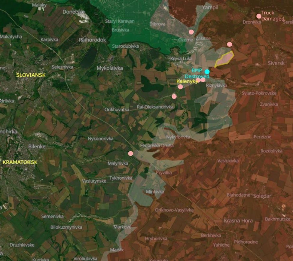 A Russian assault in three trucks south of Predtechyne left them with 5 killed and 7 wounded.