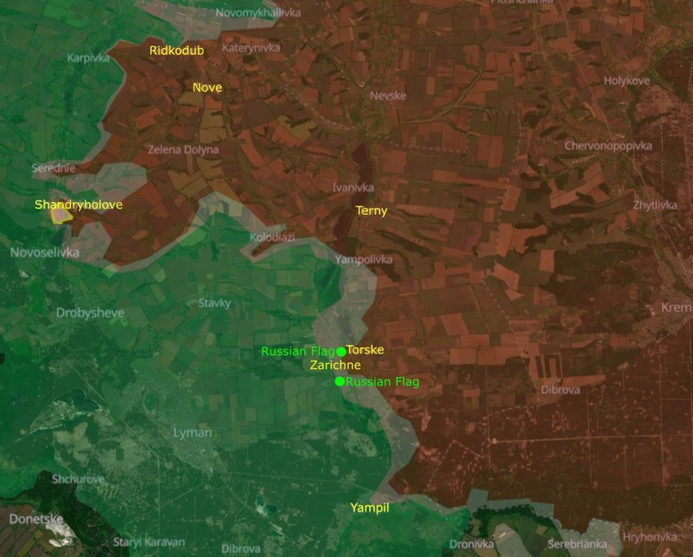 Невеликі групи росіян продовжують заходити в Дронівку з півдня. Вони також розширюються перед Вимкою. Після входу в Переїзне минулого тижня росіяни увійшли в південну частину Федорівки.